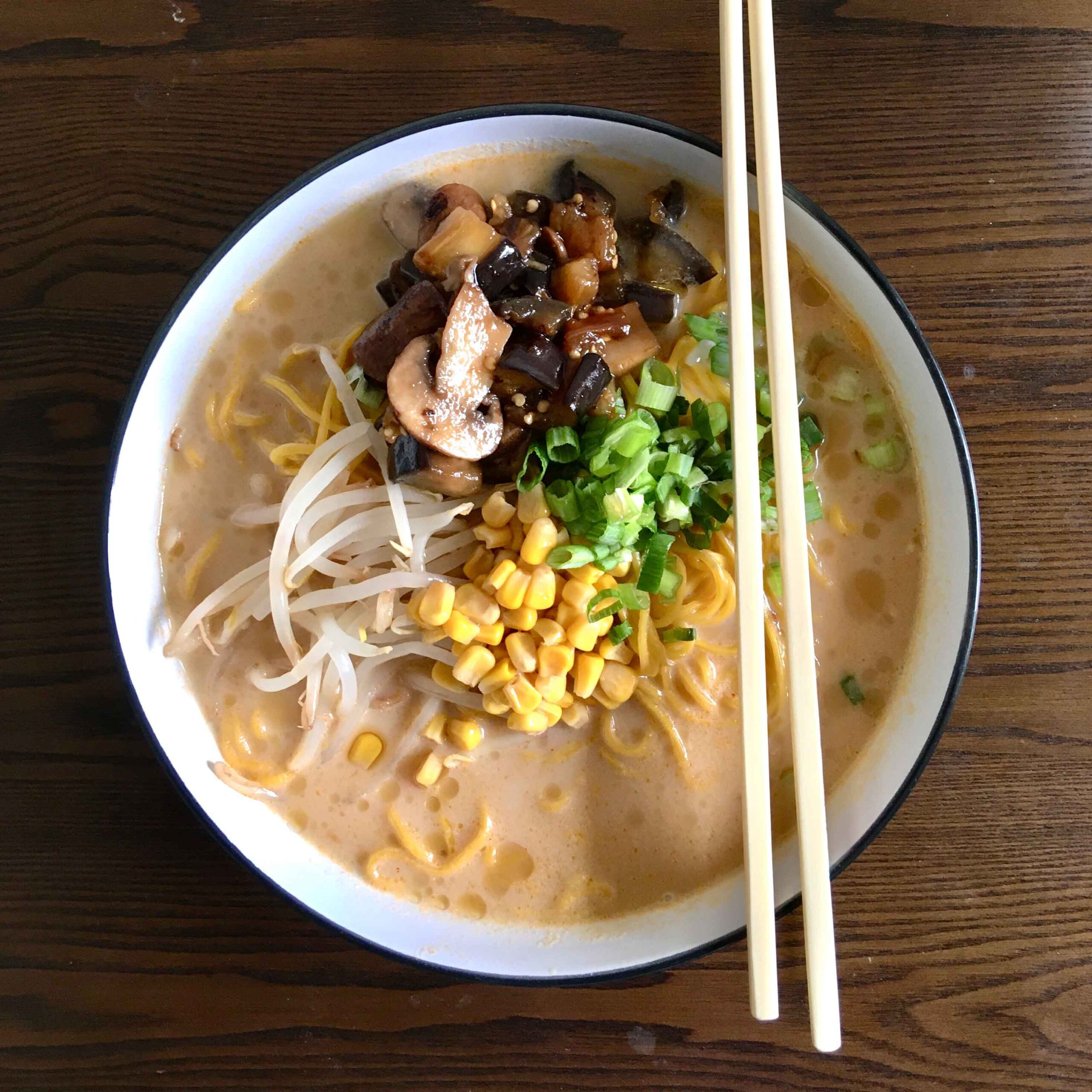 Teriyaki, aubergine, sweetcorn, spring onion, tofu broth