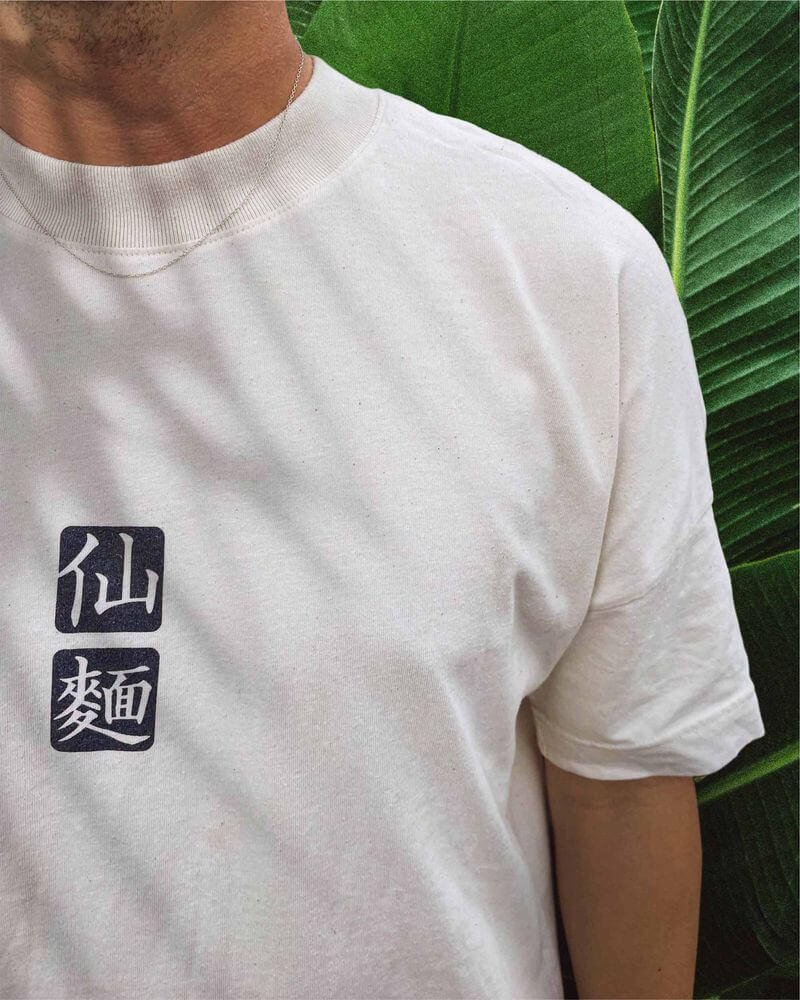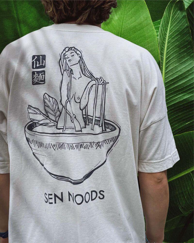 White t-shirt with Sen Noods characters print